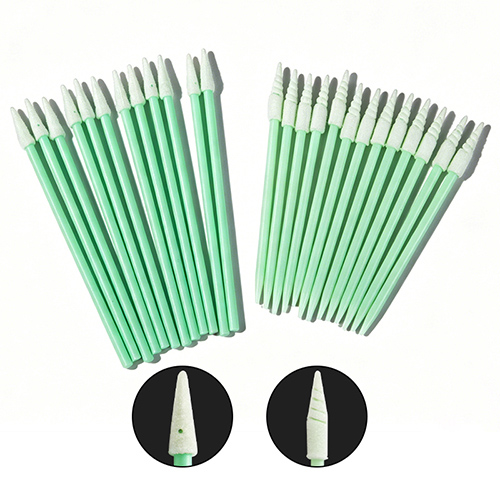 Clean Tip Polyurethane Swab Polypropylene Handle It is constructed from compressed 100 ppi open-cell polyurethane foam. The is an excellent dissipative swab for cleaning very small areas. Its laundered head possesses good capacity and cushioning. A compact, electrically dissipative, round handle and flexible head paddle provide support without added thickness.This swab is well suited for cleaning thin, grooved areas of parts and assemblies.