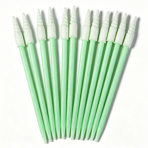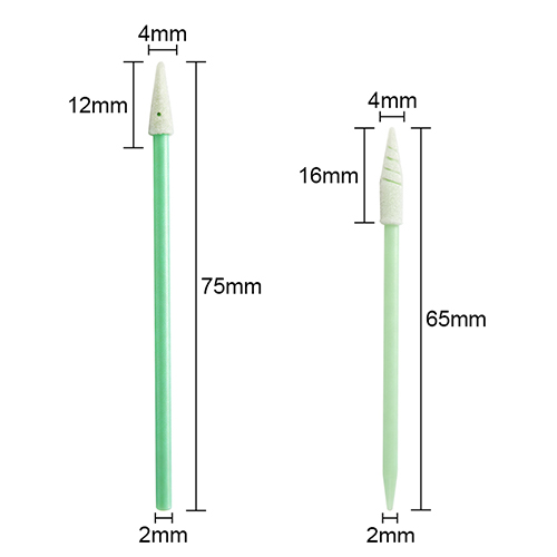 It is constructed from compressed 100 ppi open-cell polyurethane foam. The is an excellent dissipative swab for cleaning very small areas. Its laundered head possesses good capacity and cushioning. A compact, electrically dissipative, round handle and flexible head paddle provide support without added thickness.This swab is well suited for cleaning thin, grooved areas of parts and assemblies.