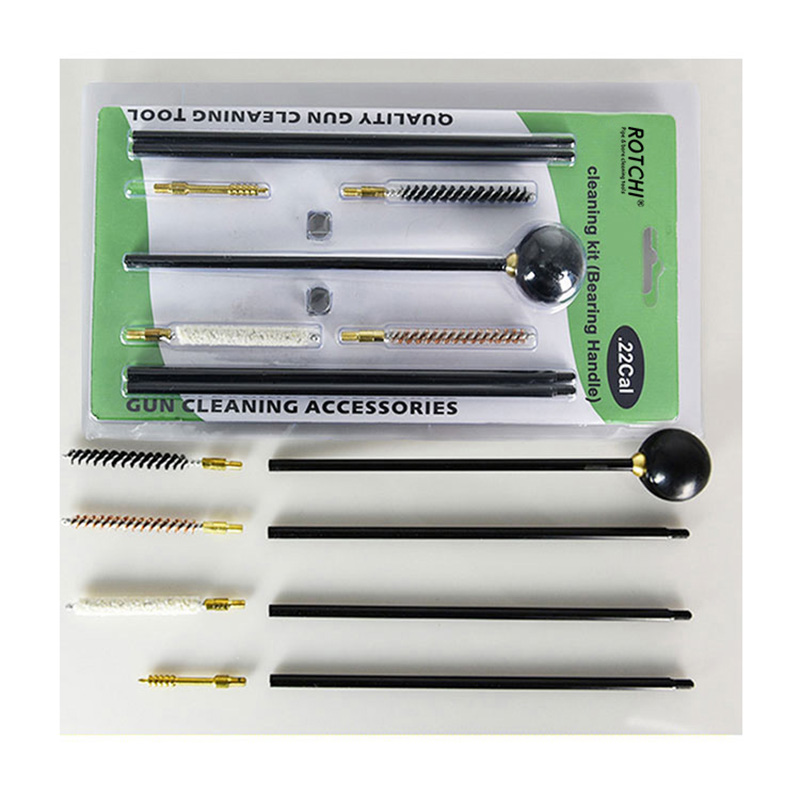 Professional gun cleaning kit for rifles and airgun.Its ball handle with bearing in not only permits the brush cleaning in bores rotating freely,but also provides you a comfortable handle in hand. The Precision machined rods are long, straight and smooth ,without step at the connections.
