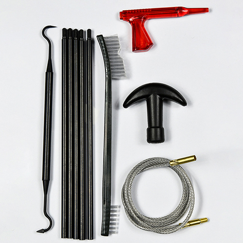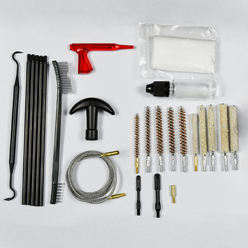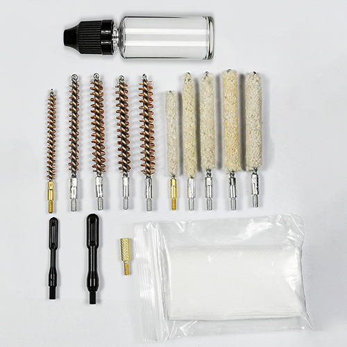 Rifle cleaning kit includes 5 sizes (.177, .22, .243, .27, .30 cal.), brass brushes