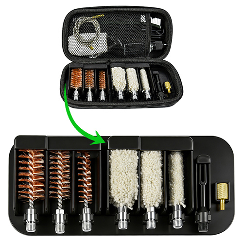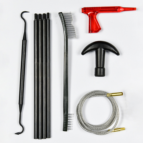 Shotgun cleaning kit includes 3 sizes ( 12/16G, 20G, 410). Brass brushes and cotton mops, 4 rods 1 calbe. Sands and black color for choices.