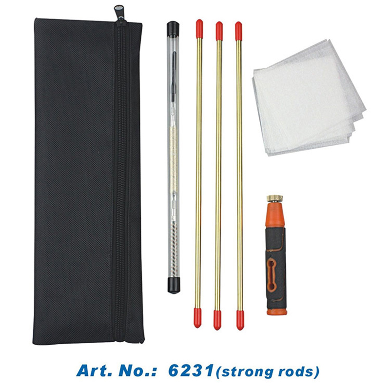Simple bag gun cleaning kit can be used on rifles , shotguns, pistols.The bag is made of canvas with zips. Gun cleaning rods or cables with cleaning brushes and multi functional handle ensure you have full set of cleaning tools for gun cleaning.