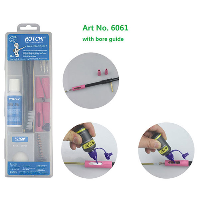 Transparent Box Airgun Gun Cleaning Kit with Oil Bottle ● Strong and transparent box, tosee the internal accessories easily. ● Professional rods straight, heavey duty brushes, good for bore cleaning. ● Multi choice in gun style and calibers. Meet different gun cleaning. ● Oil bottles are good for you to fill gun cleaning oil and solvent. ● Easy to put OEM or customer’s stick and logo on